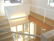 外部からの騒音を抑え、内部からの生活音の流出も抑えるために、外壁や部屋間の間仕切り壁の構造、窓に複合サッシを使用するなど、家の各所に工夫をこらしています。